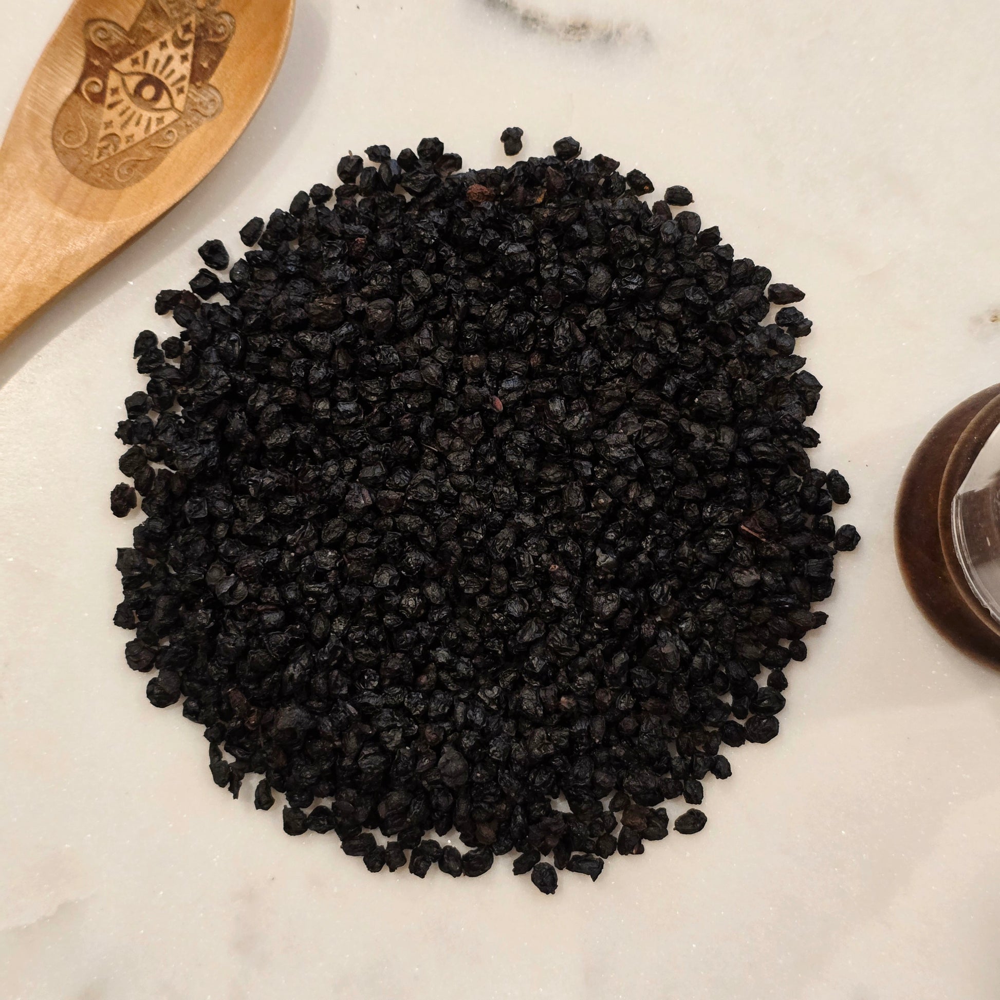 Wildcrafted elderberries, cut and sifted for consistent size and ease of use. These dark, rich berries have a long tradition in herbal practices and are commonly used in loose teas, decoctions, and apothecary preparations. Elderberries are valued for their deep color, robust character, and versatility among herbalists and botanical enthusiasts.