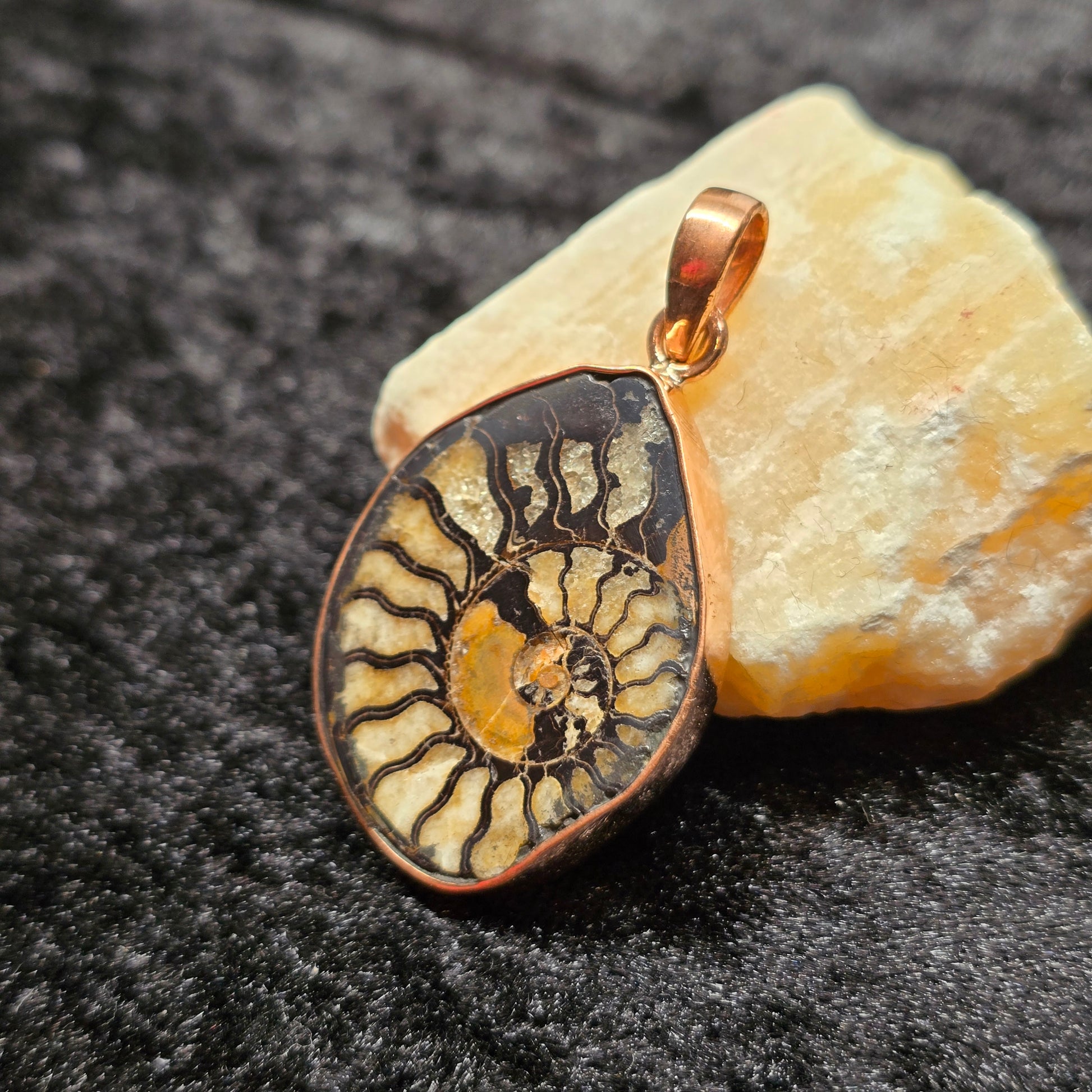 Natural Ammonite Fossil Pendant | Copper Setting