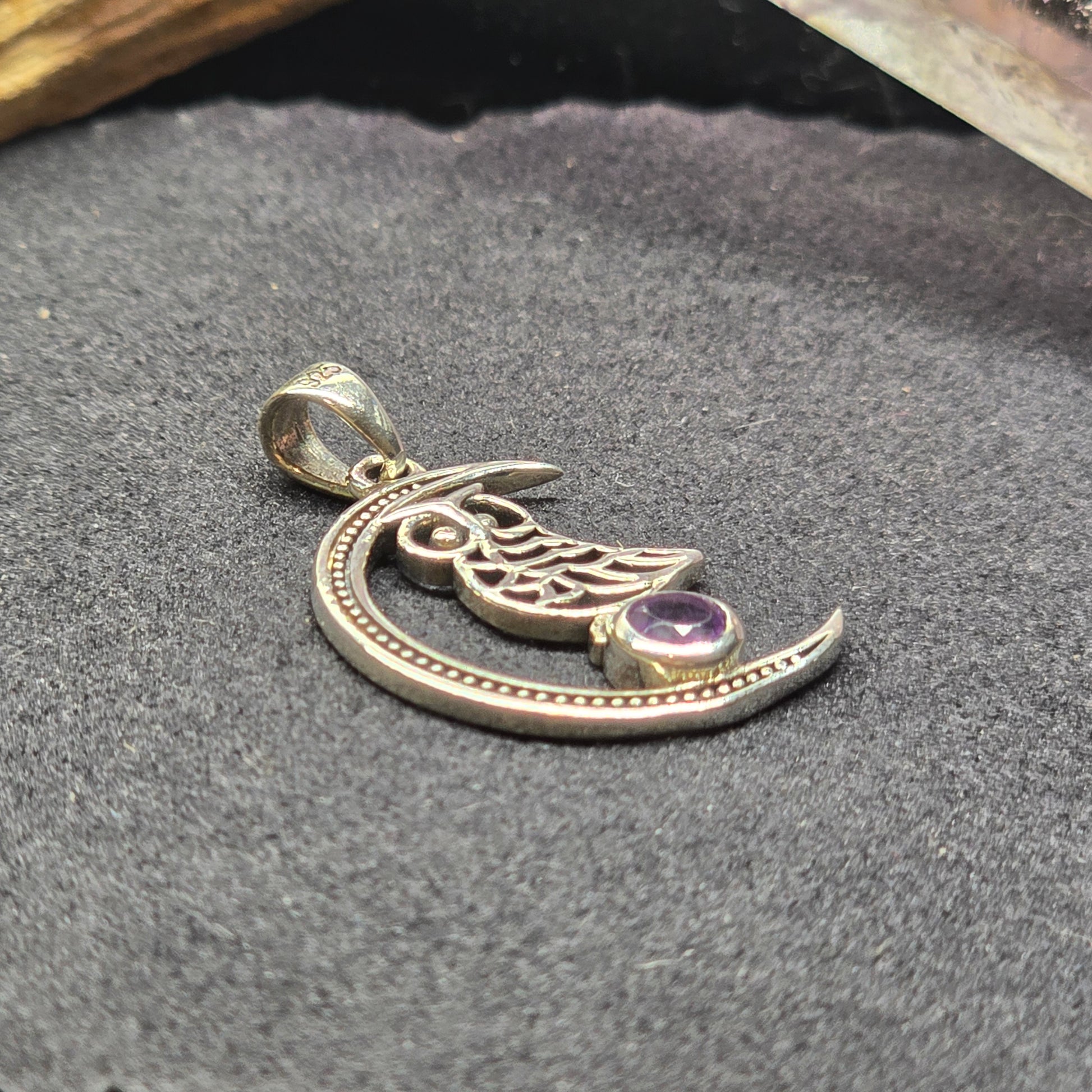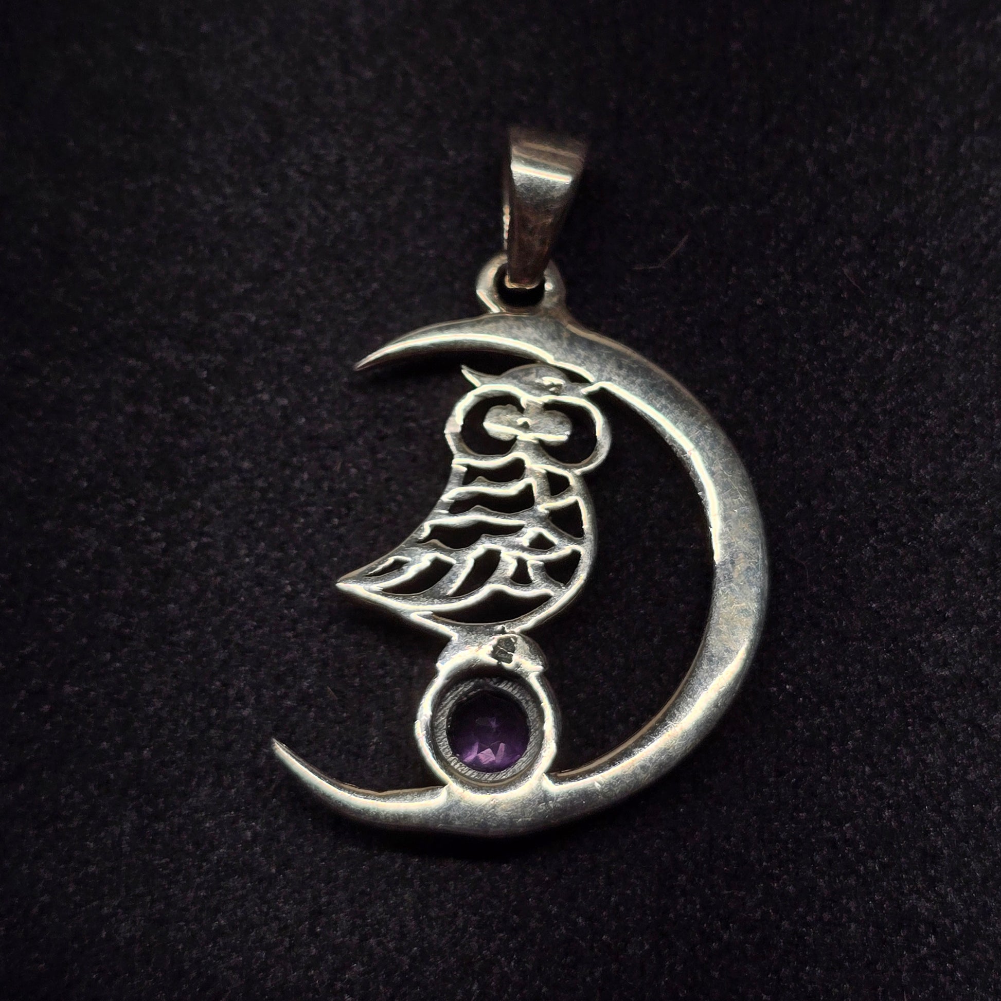 Moon & Owl Amethyst Pendant | Sterling Silver (s925)