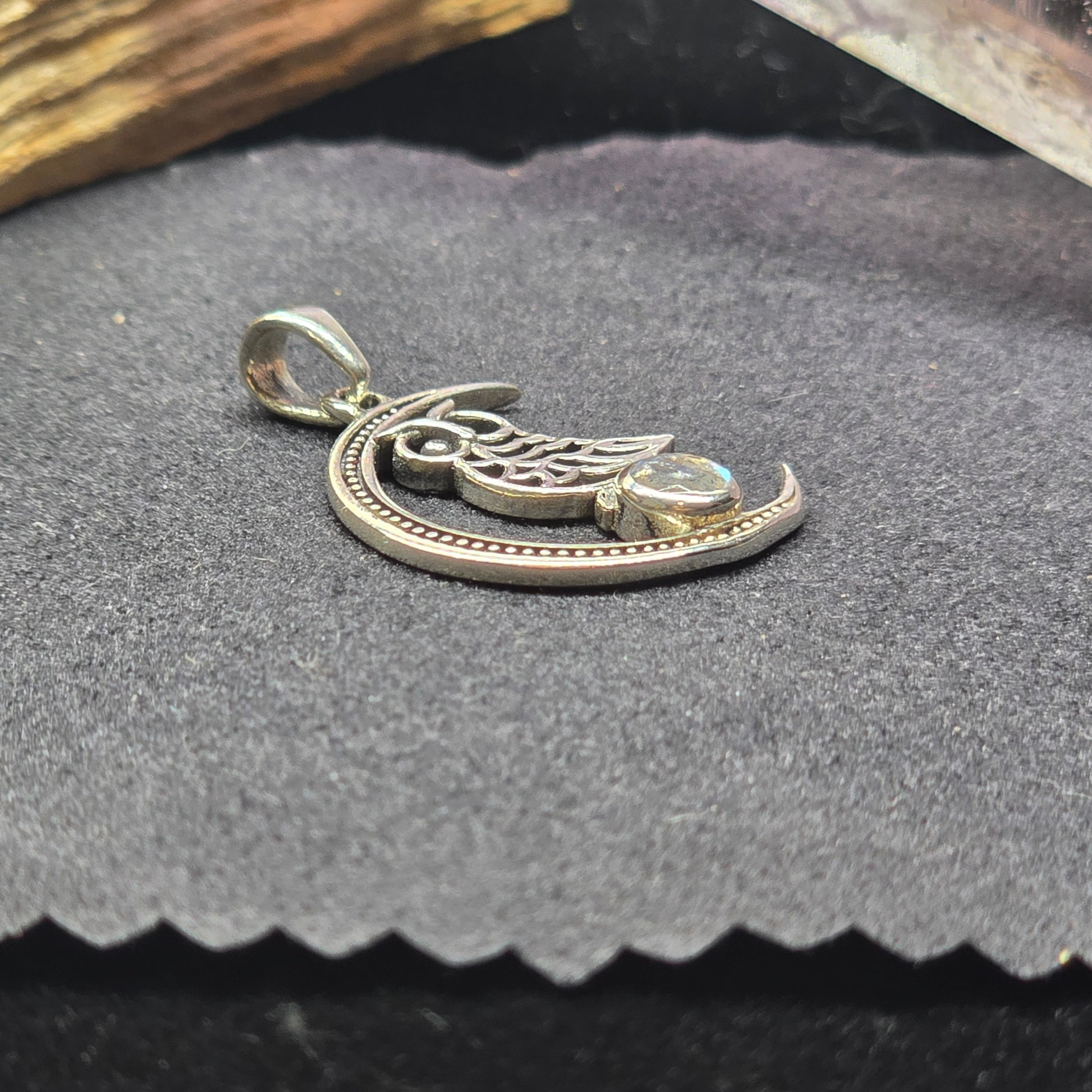 This beautifully crafted pendant features an elegant owl perched within a crescent moon, accented with a genuine labradorite stone. Made from solid sterling silver (s925), the detailed design highlights fine metalwork while allowing the natural stone to remain the focal point.