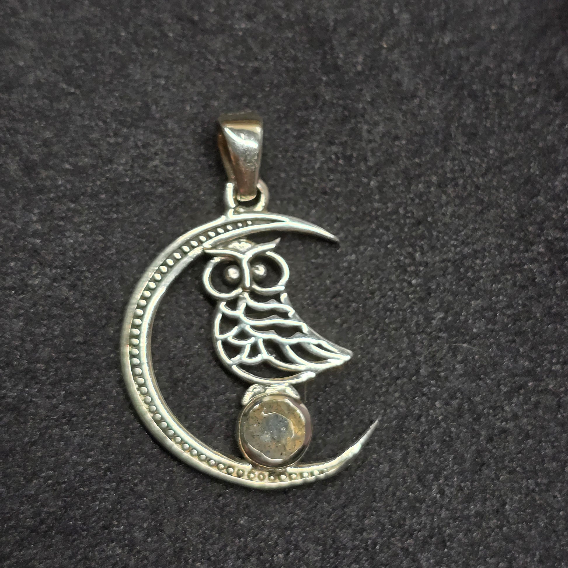 Moon & Owl Labradorite Pendant | Sterling Silver (s925)